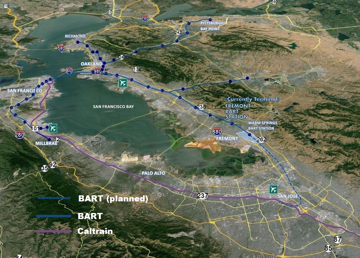 Several unique assets: a centralized location, vast unoccupied land, accessibility to BART (Bay Area Rapid Transit), etc. Fremont BART Station is currently a terminal transit hub and the new Warm Springs Station will open in 2016. Expansion to San Jose to connect with Caltrain is planned to close the transit loop for the entire Bay Area.